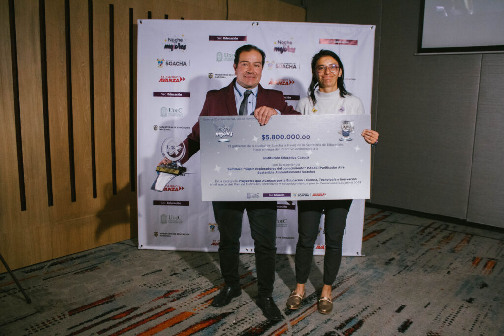 Mejor Proyecto de Cultura: Nilson Arbey Pinzón Osorio y Audrey Yusselfy Cubides Guzmán, docentes líderes de la experiencia pedagógica ‘Segundo festival de muestras audiovisuales Fuego en Cazucá’ de la Institución Educativa Gabriel García Márquez.